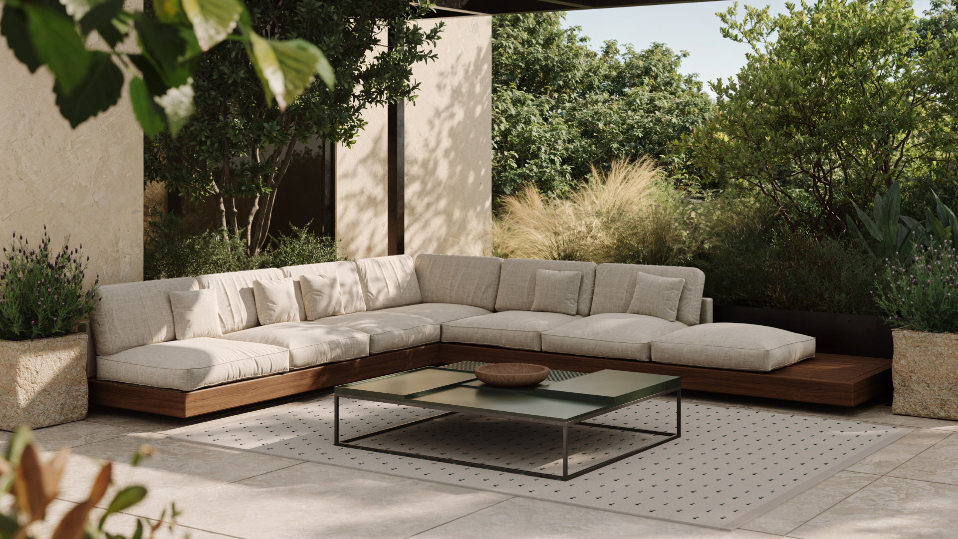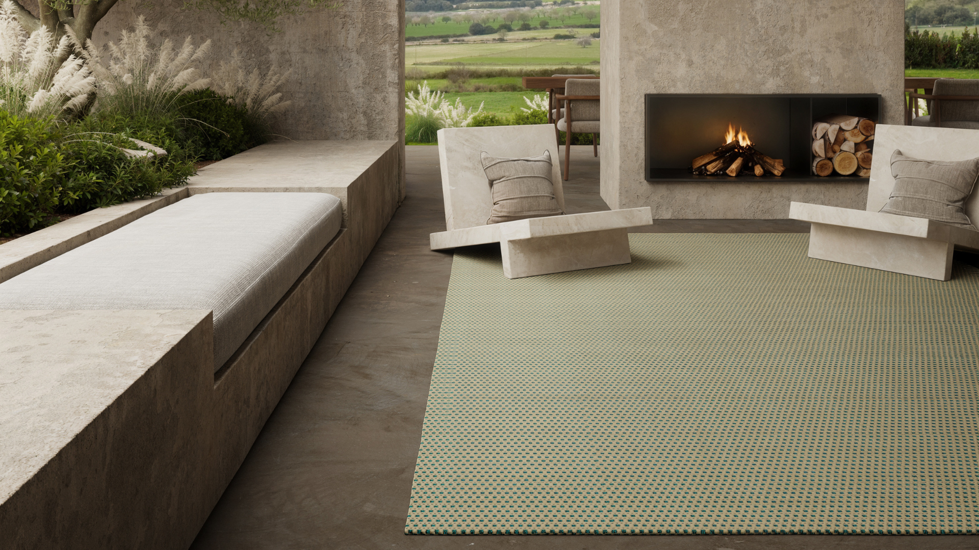 Create a relaxed and elegant lounge area with handmade outdoor rugs.